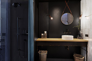 the dining room with a big opening to the sea is fit in the place as well. the whole interior is maintained in rustic style.